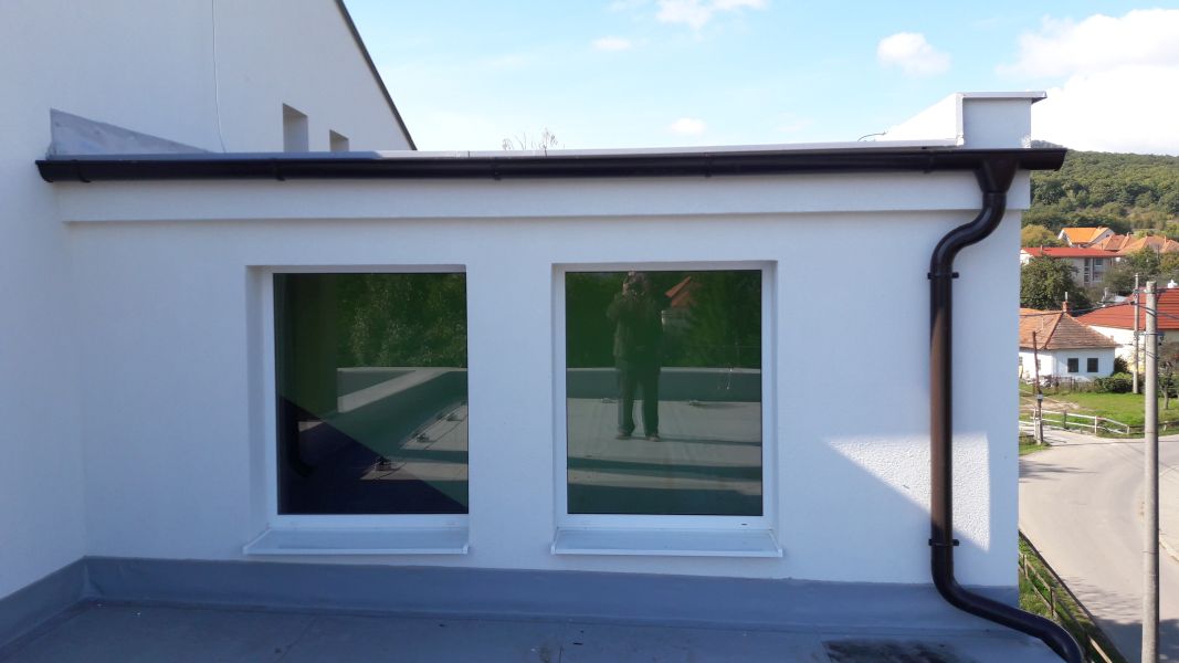 -polystyrénom v hrúbke 15cm sme zateplili strešné konštrukcie nad šatňami, schodiskom na balkón a terasou, na ktoré následne bola položená hydroizolácia Fatrafol. Nad terasou bola táto zaťažená riečnym štrkom frakcie 16-32mm,